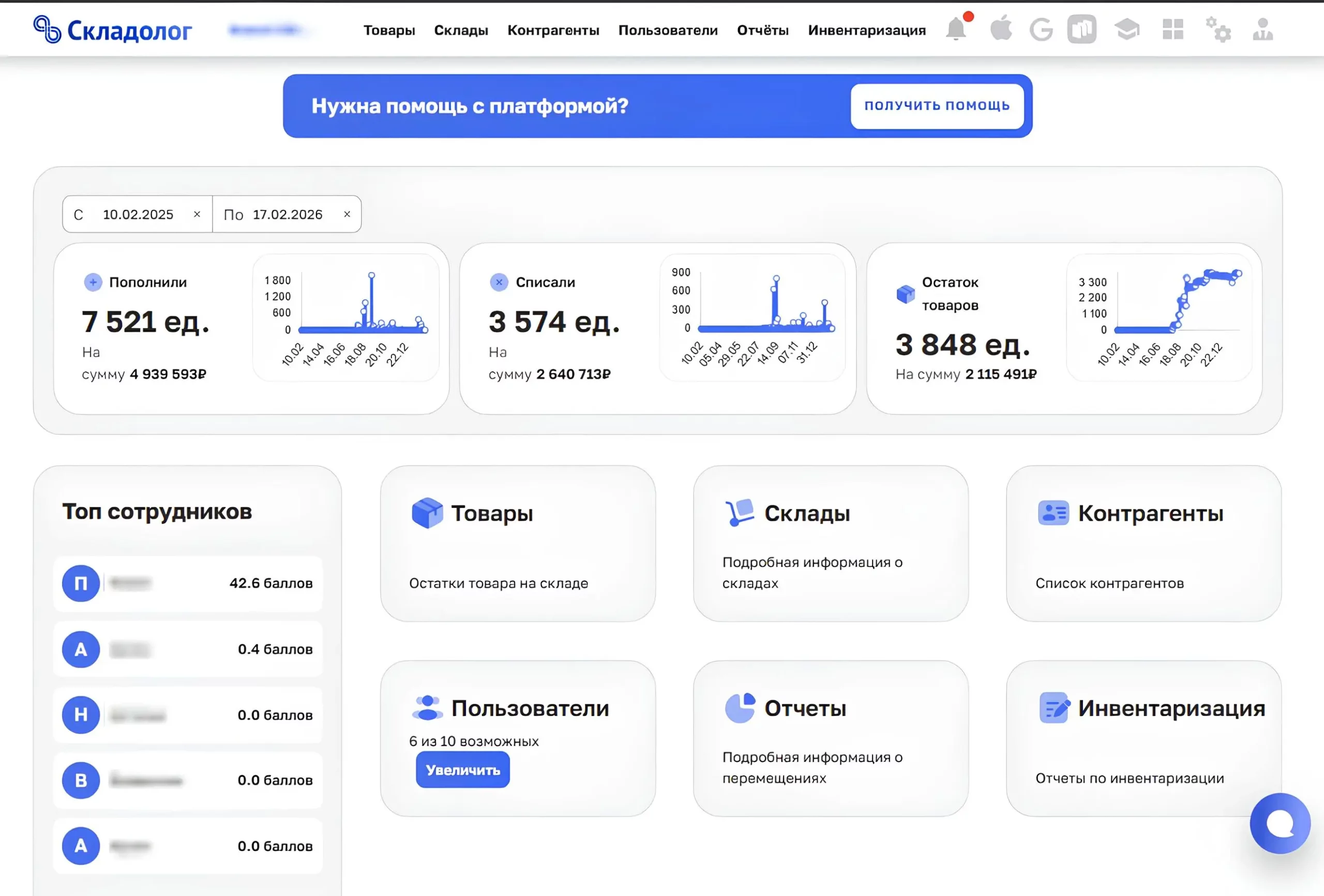 Тест-драйв на 14 дней бесплатноКак работает автоматизация складского учета