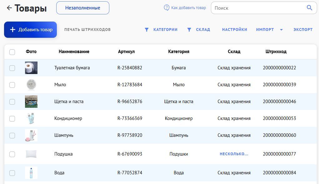 Система обеспечивает полный цикл складского учёта. Через мобильное приложение на смартфоне можно проводить приёмку, отгрузку, перемещение, списание товаров. Для инвентаризации действует чёткий пошаговый план: сотрудники сканируют QR-код зоны склада, вносят фактическое количество товаров, а система автоматически сверяет “Было” и “Стало”. С помощью программы легко контролировать остатки (система уведомляет, когда товар заканчивается, помогает сформировать автозаказ поставщику по шаблону, создаёт отчёты, аналитику), а также печатать этикетки, ценники, накладные, счета-фактуры, создавать рейтинги продуктивности для сотрудников с балльной системой оценки.